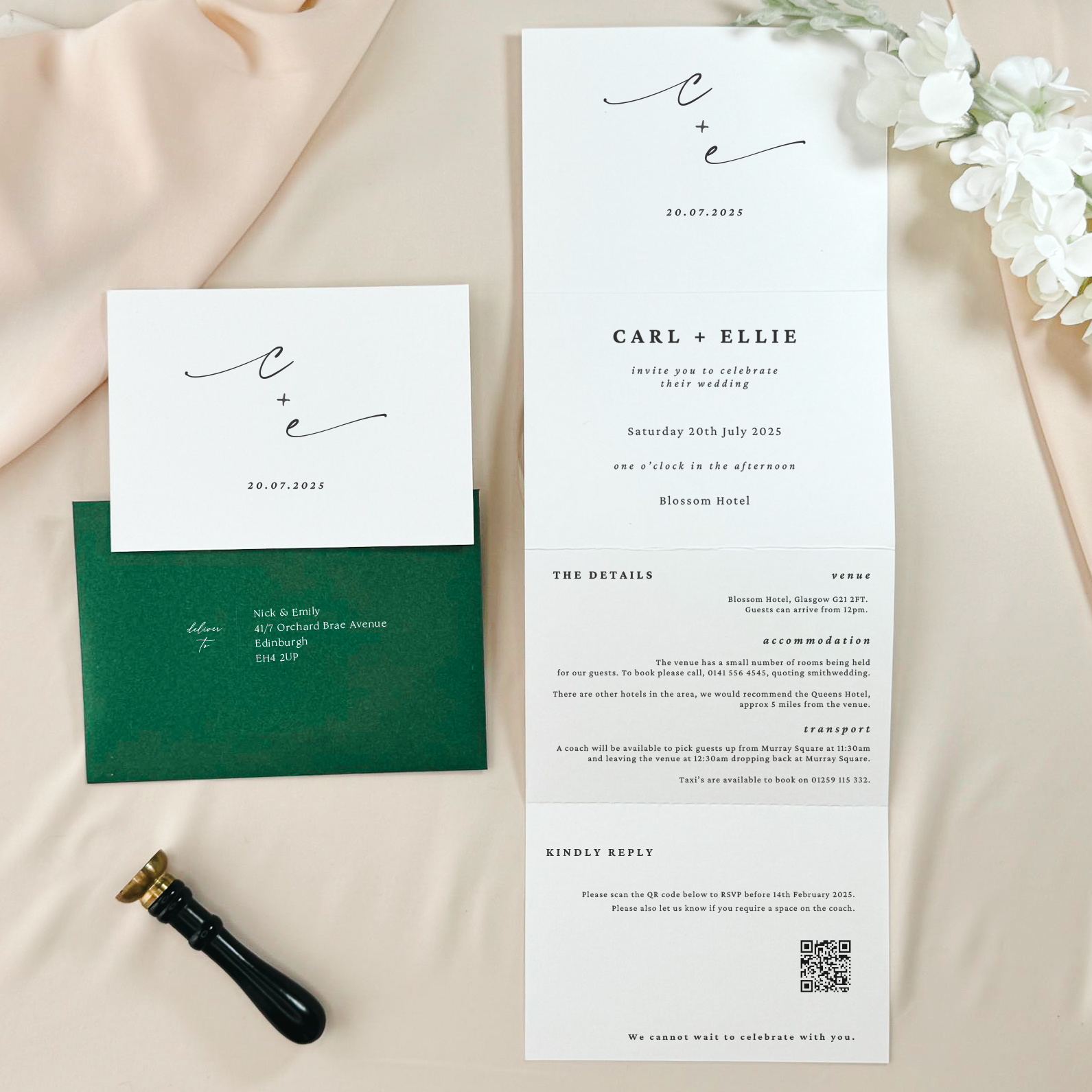 Transform your wedding announcement into an experience with our innovative concertina-style invitation suite.